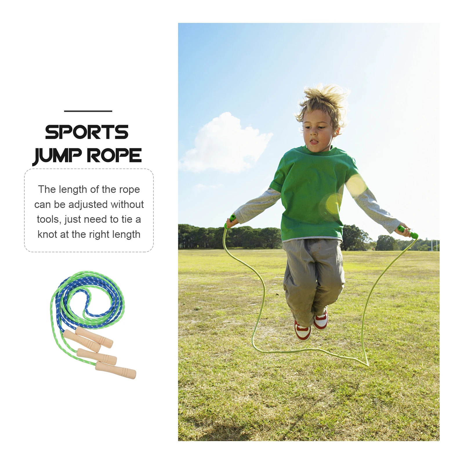 Cuerda de saltar de madera ajustable para niños, 2 uds., mangos redondeados de agarre suave, equipo de fitness resistente al desgaste, cuerda para saltar