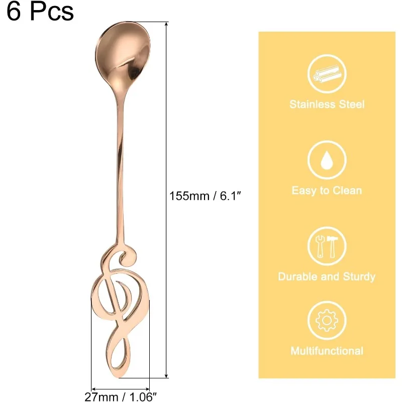 Cuchara de café con nota musical de acero inoxidable, Mini vajilla, cucharas de postre, cuchara mezcladora para té, pastel de café, oro rosa, 6 uds.
