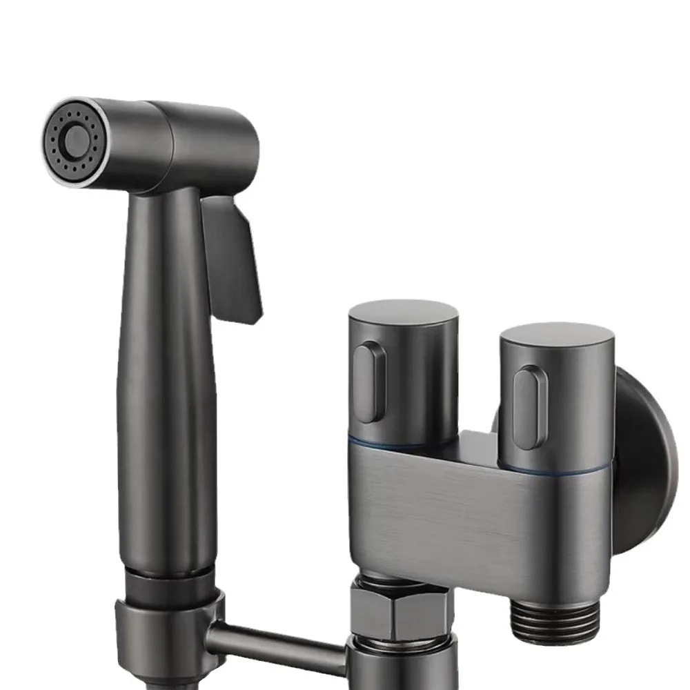 Grifo de ducha de bidé portátil montado en la pared gris, válvula angular de doble salida, pulverizador de bidé de mano, accesorios de inodoro