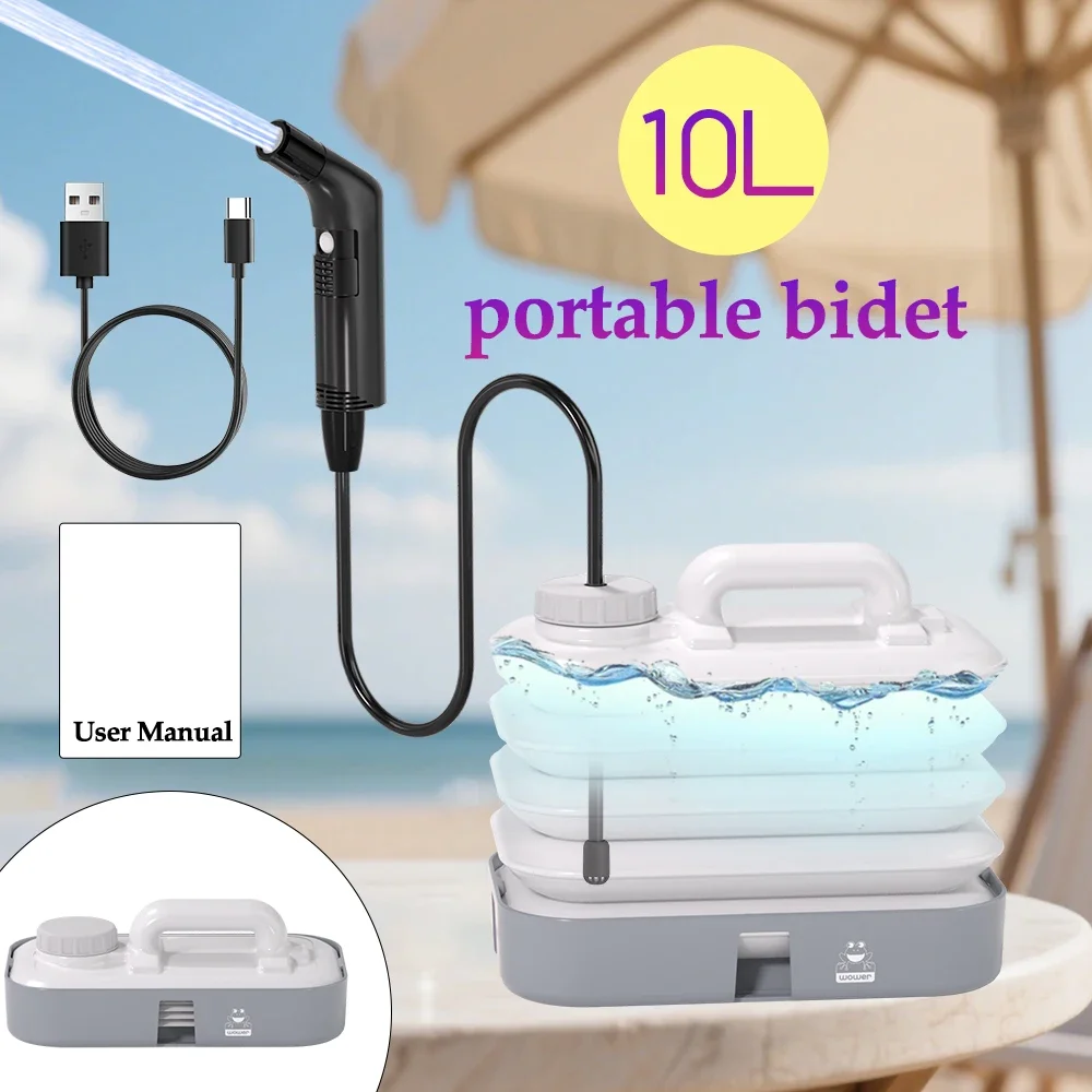 Rociador de bidé portátil Extra largo de 2M, recargable, Shattaf, viaje para mujeres y hombres, higiene, limpieza con tanque de agua plegable de 10L