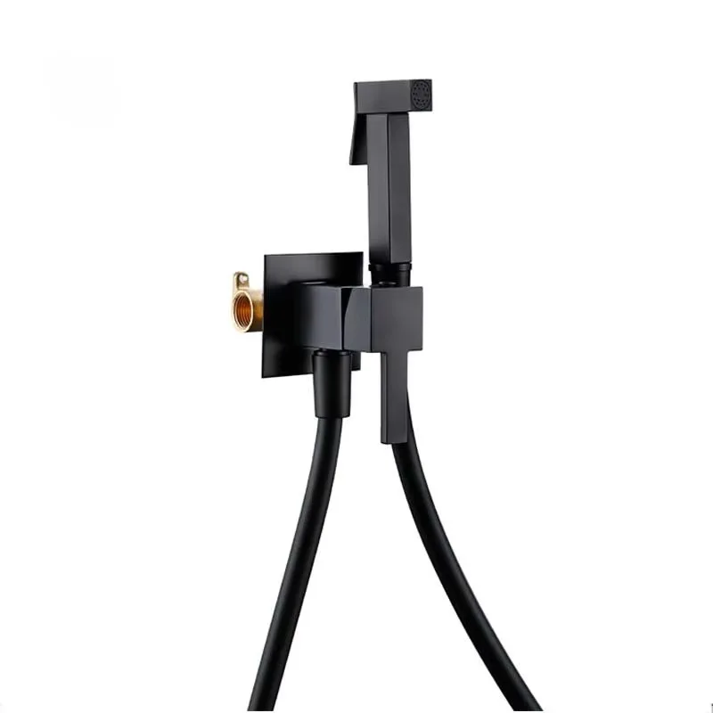 KEMAIDI-grifos de bidé negro mate, montaje en pared, ducha de baño, grifo de inodoro frío y caliente con ducha de mano, grifo de agua fría y caliente
