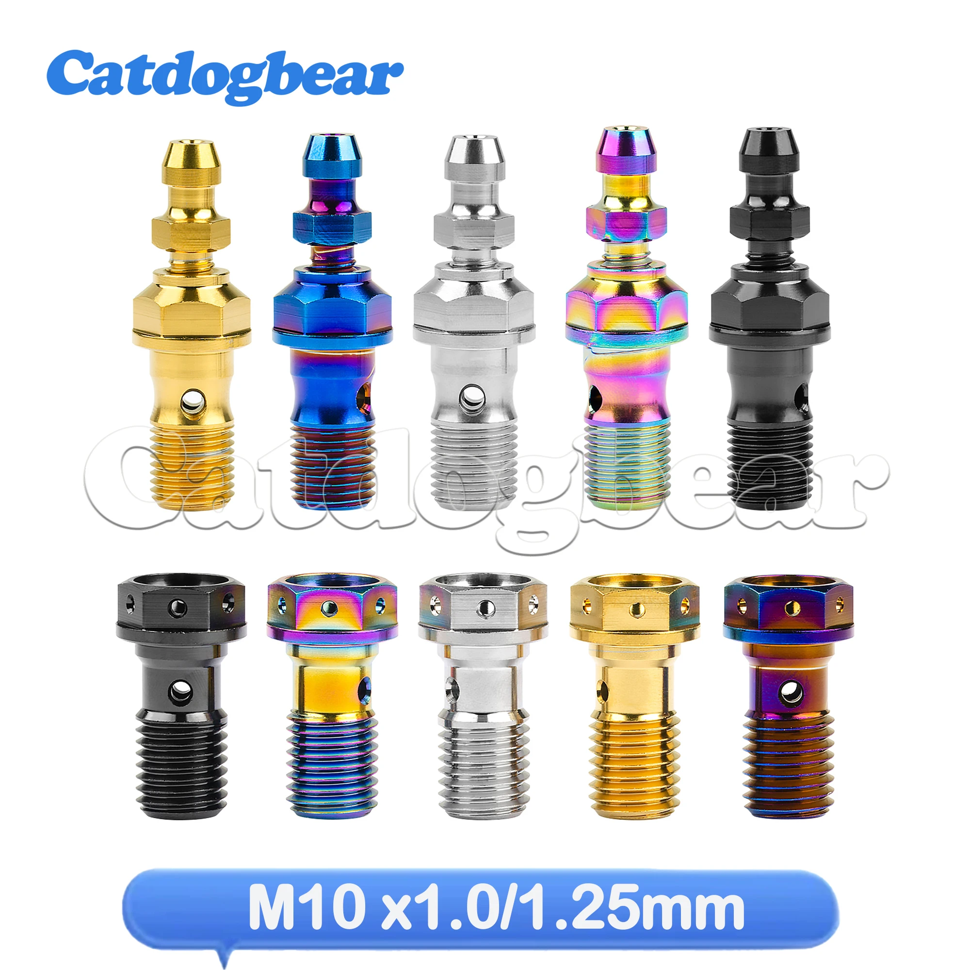 Perno de titanio Catdogbear M10x1,0/1,25mm, perno Banjo para freno Brembo Lin y perno de embrague de un solo orificio con válvula de purga