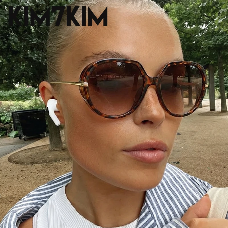 Gafas de sol ovaladas de gran tamaño para mujer 2026 marca de lujo Vintage con marco de Metal redondo, gafas de sol para señoras UV400