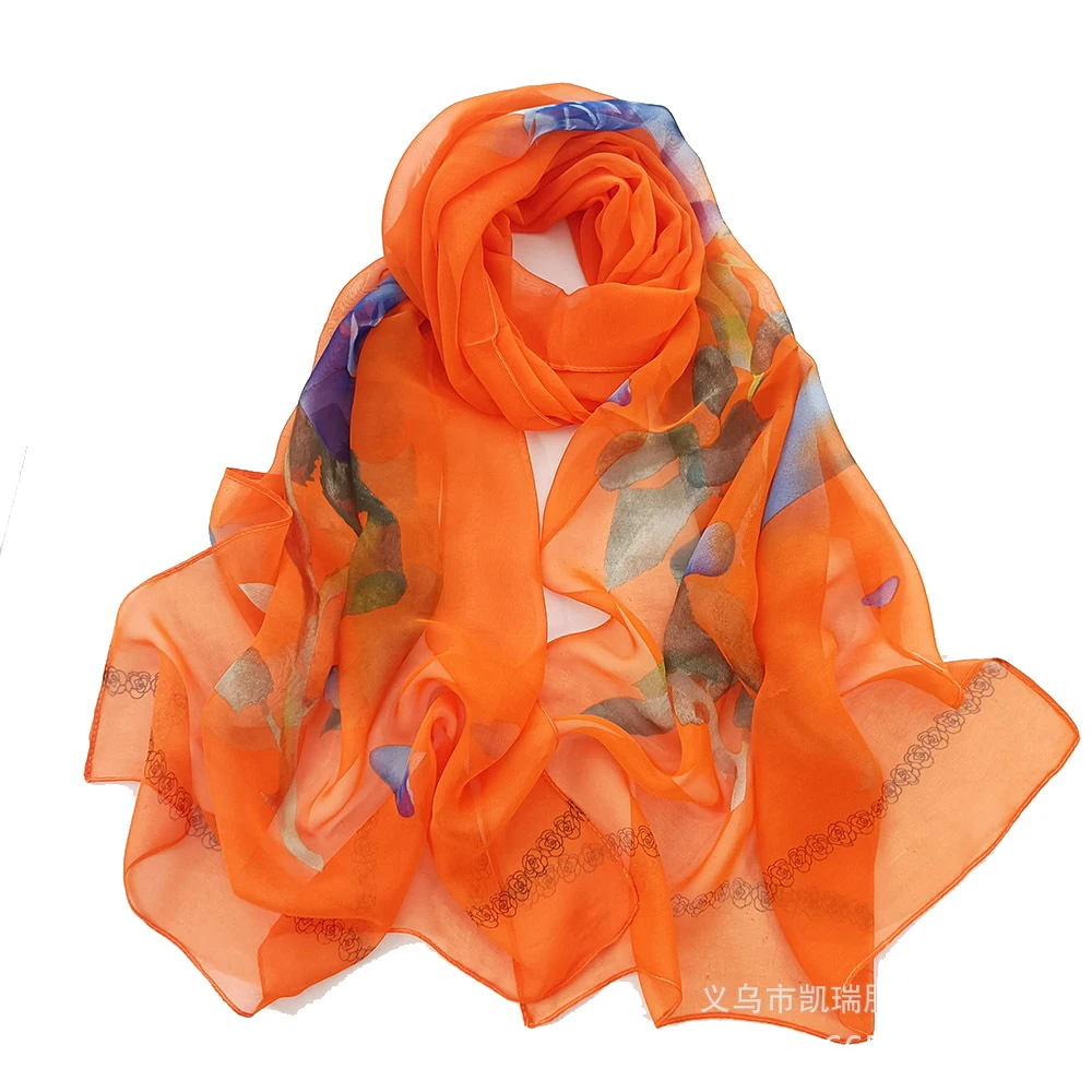 Georgette-bufanda de gasa con estampado de flores rosas para mujer, chal largo y fino, suave, para playa