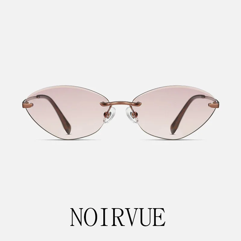 Gafas de sol ovaladas sin montura con lentes de nailon premium NOIRVUE, estilo Y2K Millennium | Lentes de Sol UV400 con Montura de Cobre Blanco con Alto Contenido de Níquel