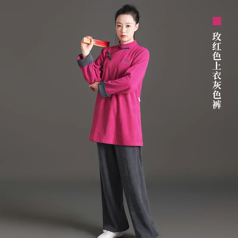 Traje de Tai Chi para mujer 2025, ropa de práctica de Baduanjin modernizada con cuello asimétrico bordado para invierno