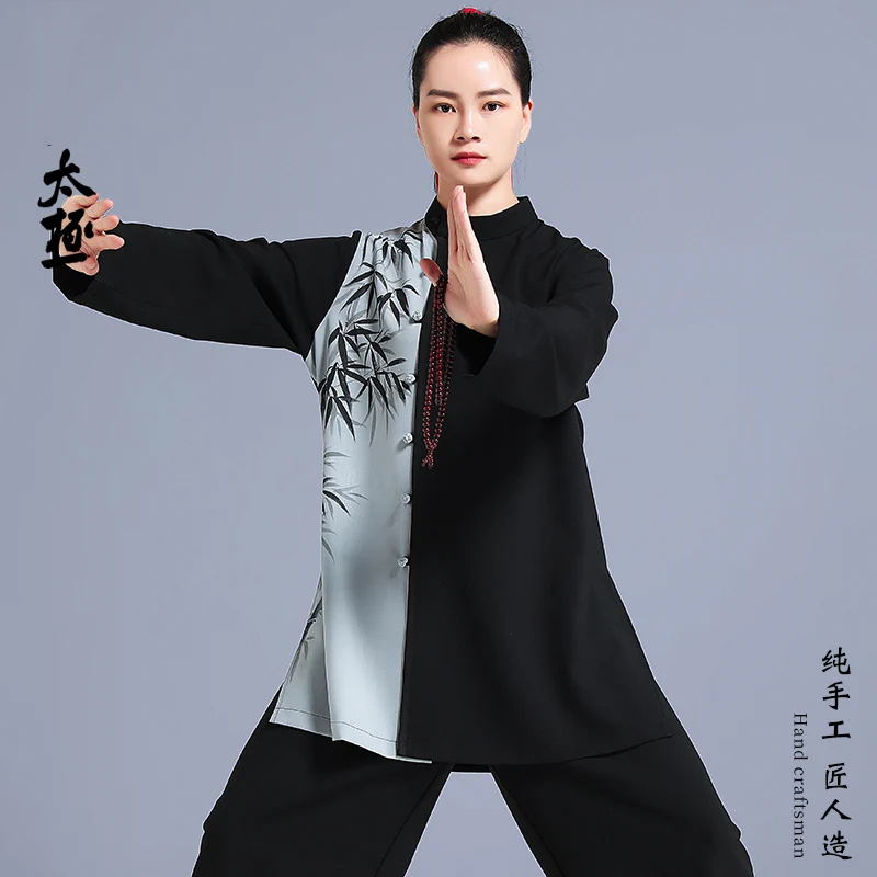 Traje de Tai Chi de bambú pintado a mano de dos tonos, uniforme drapeado de Kung Fu para hombres y mujeres, conjunto de práctica matutina, novedad de 2024