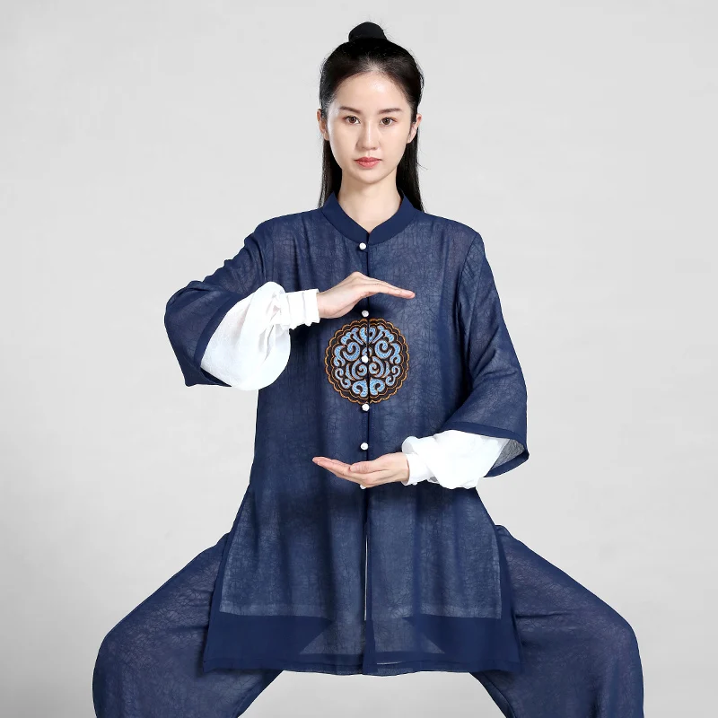 Nuevo traje tradicional chino de Tai Chi, uniforme de entrenamiento de manga larga Unisex para Wushu y Baduanjin, Primavera/otoño y verano de longitud media