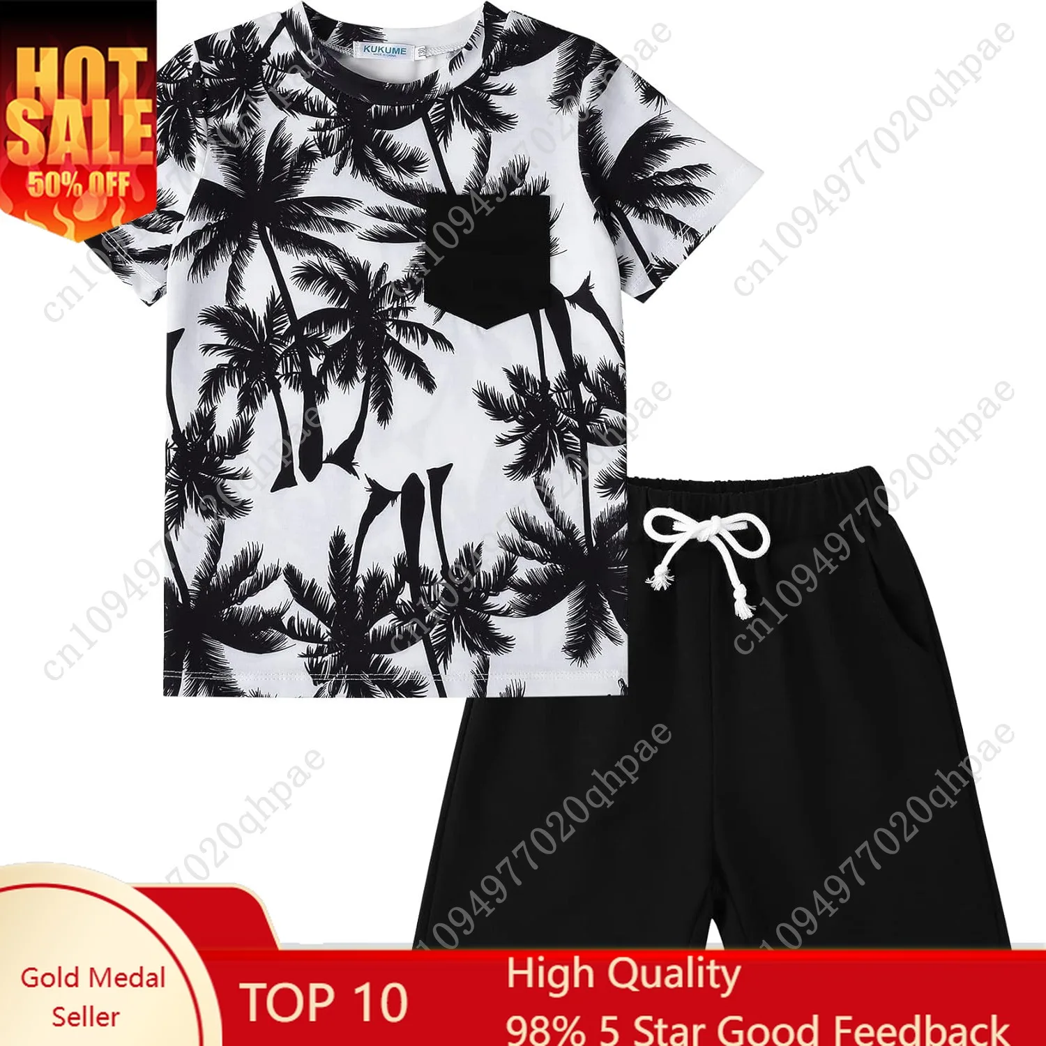 Conjuntos de pantalones cortos para niño Traje hawaiano Niño Hojas Floral Camisa de manga corta Top + Pantalones cortos Trajes