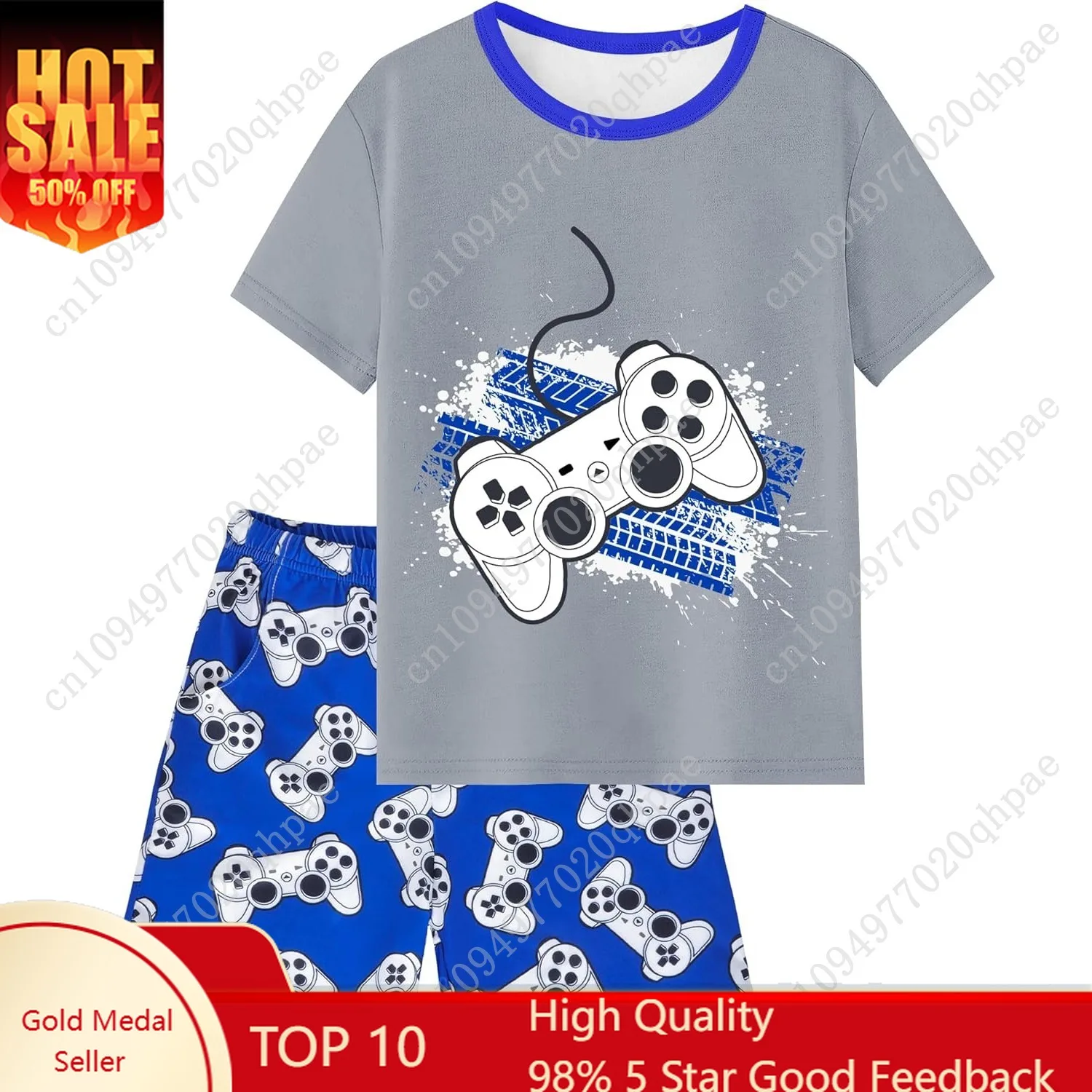 Pijamas para niños, pijamas de verano de manga corta, conjunto de pantalones cortos, 2 piezas, pijamas de verano para niños, conjuntos de ropa de dormir, talla 8-16