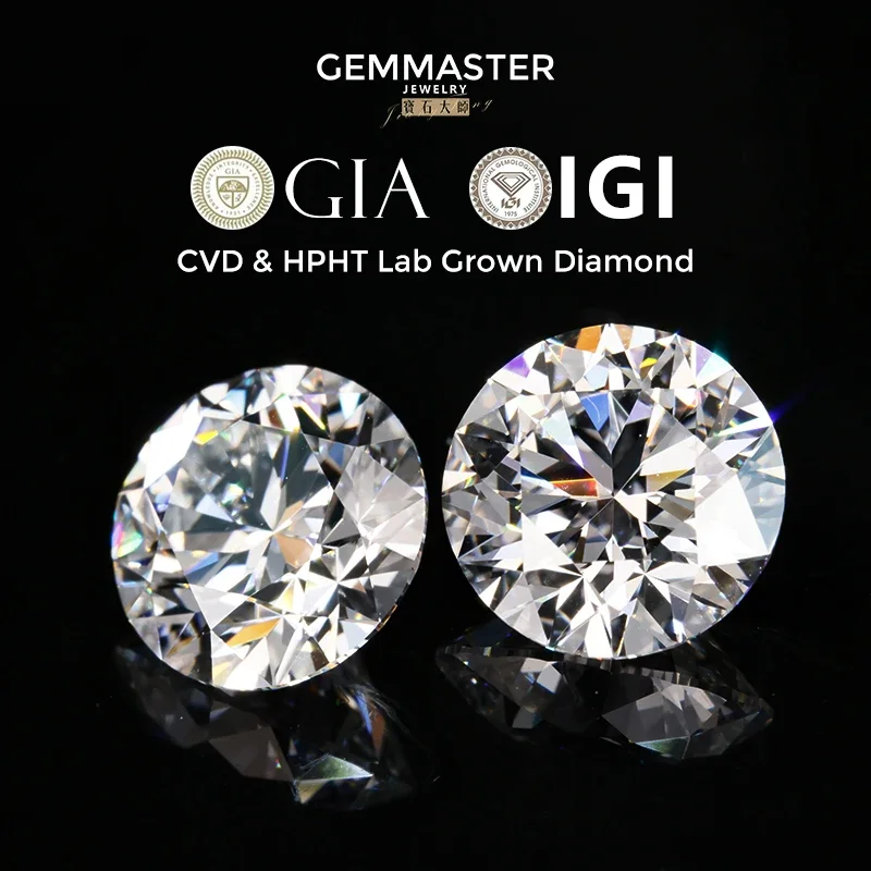 Diamante cultivado en laboratorio suelto de corte redondo D-E-F Color VVS Clarity IGI GIA Certificado CVD HPHT para joyería