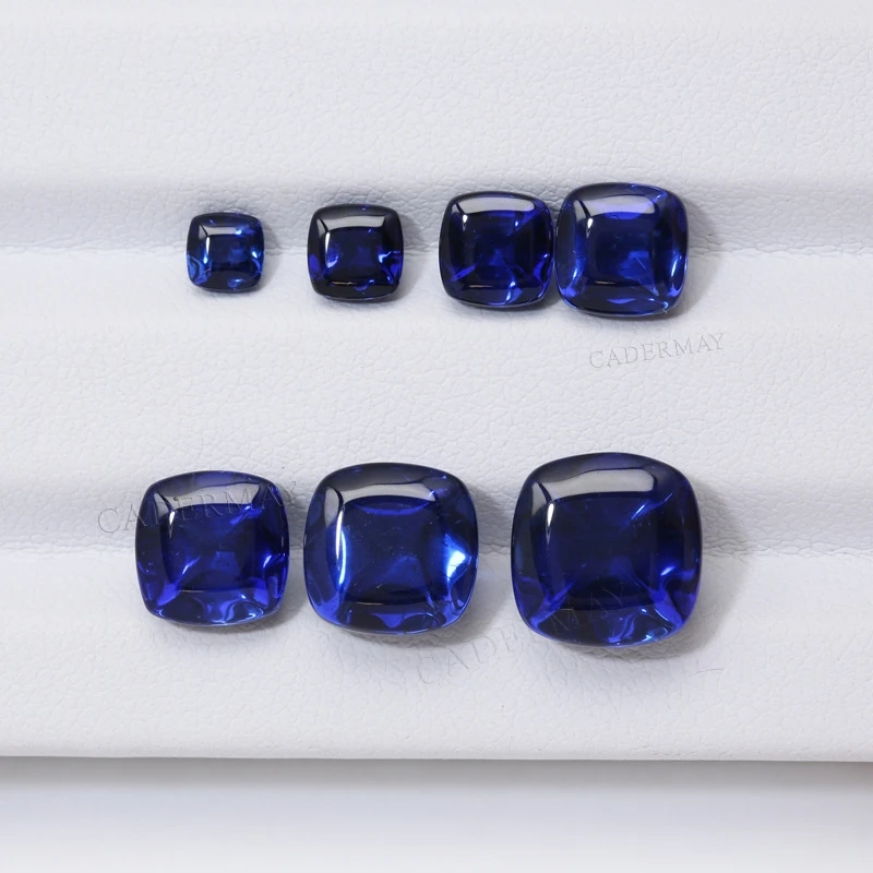 Piedra preciosa artificial sintética de color natural, tallada en forma de torre de azúcar y cinta azul, para joyería, con accesorios de collar y anillo de piedra suelta