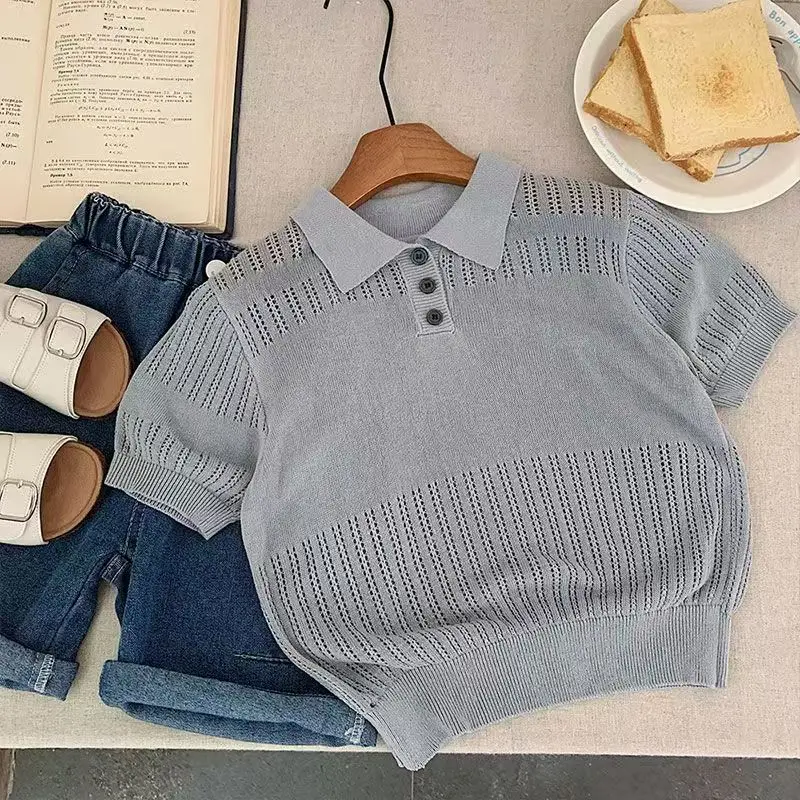 Suéter de punto con cuello tipo Polo de gama alta para verano 2026, corte fino con camiseta informal versátil ahuecada a la moda