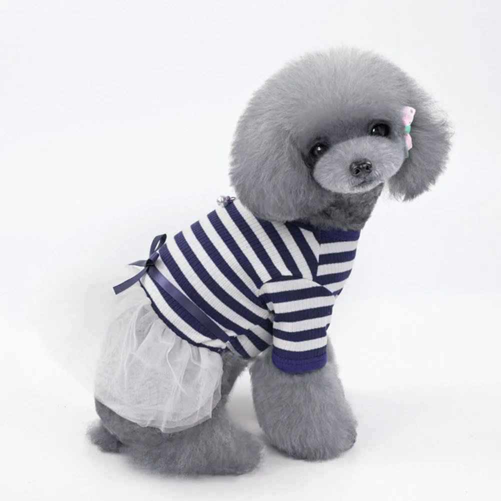 Vestido de verano para perros pequeños y medianos, falda de malla con tirantes a rayas para mascotas