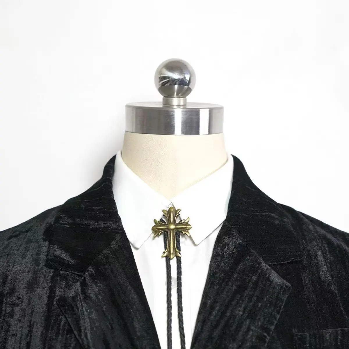 Corbata Bolo Vintage con Cruz, Colgante de Metal Bronce, Cuerda de Cuero Trenzada, Estilo Vaquero Occidental, para Hombres y Mujeres, Accesorio de Disfraz Gótico