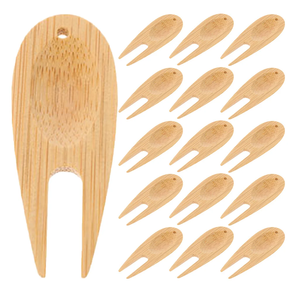 Herramienta Divot de Golf de bambú, tenedor de Golf multifuncional, reparación de tono portátil, marcador de bola, accesorio de herramienta de madera, 16 Uds.