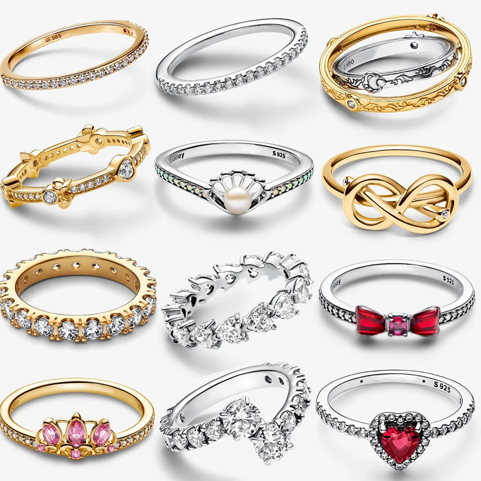 Anillo de plata de ley 925 con exquisita serie dorada, anillo de corona brillante en forma de corazón, regalo de joyería con dijes de moda, superventas