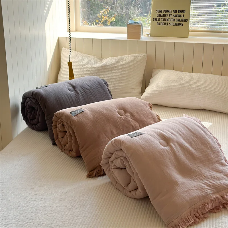 Edredón de 4 capas 100% algodón estilo coreano | Edredón ligero con borlas recortadas para primavera/otoño y verano | Transpirable para todas las estaciones