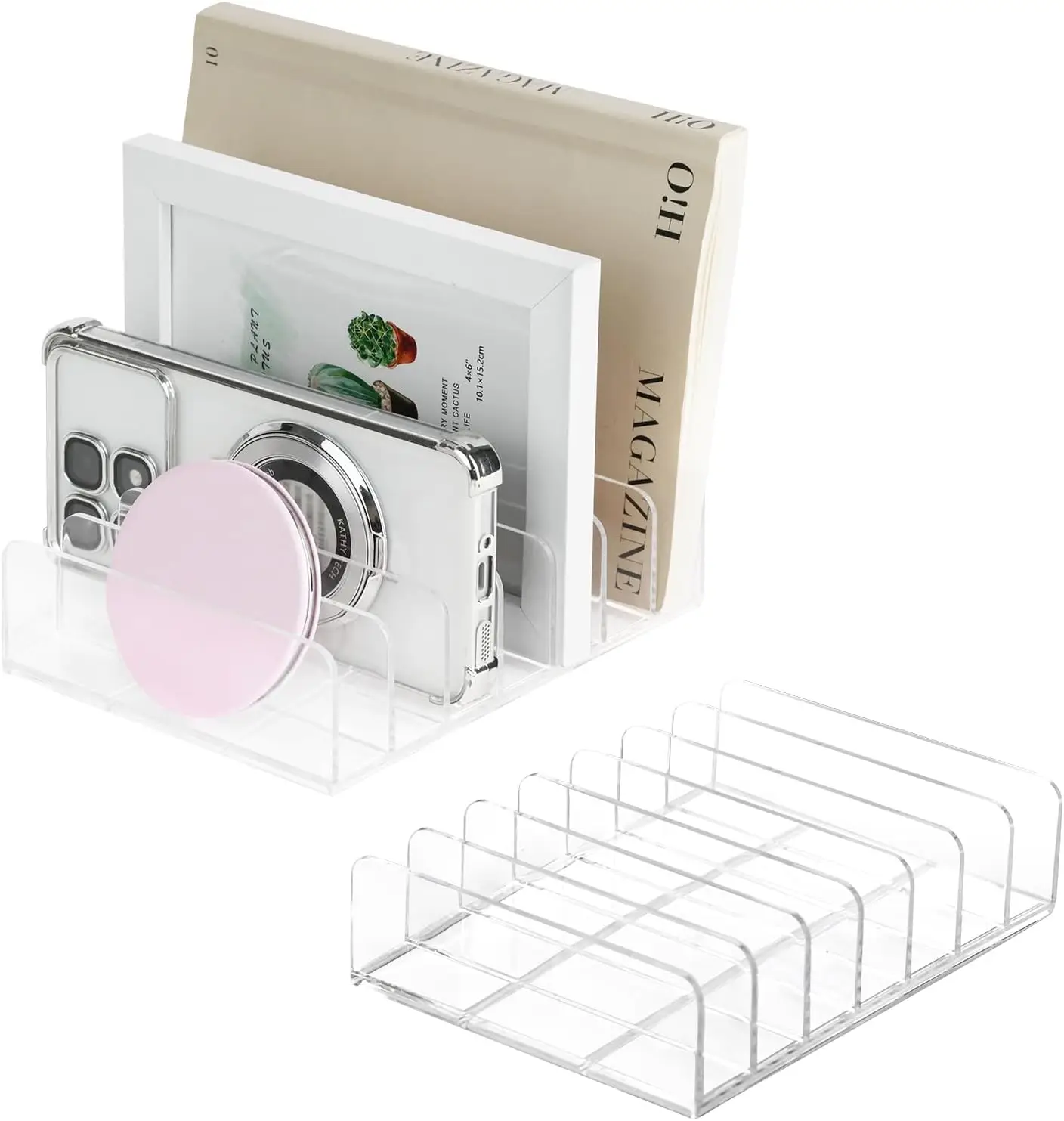 Organizador de correo acrílico de 2 paquetes, bandeja de escritorio vertical de 7 secciones para billetes, documentos, cuadernos