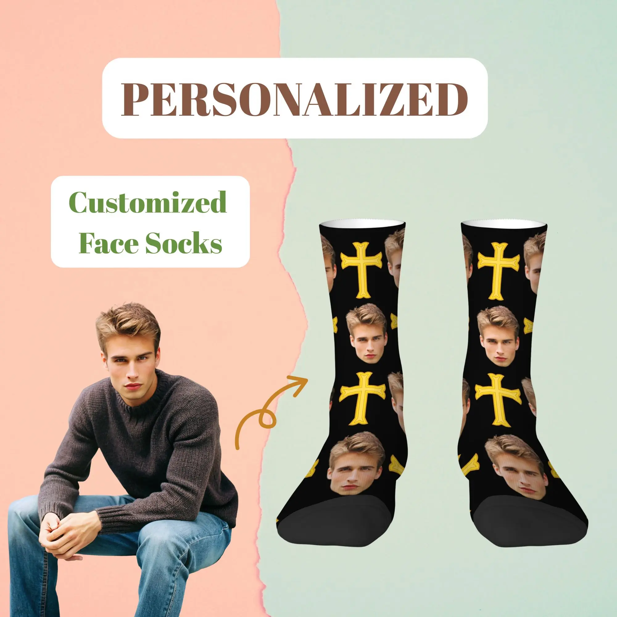 Calcetines Divertidos con Diseño Personalizado de Cara Completa, Impresión Integral, para Uso Diario y Regalo Original para Familiares y Amigos