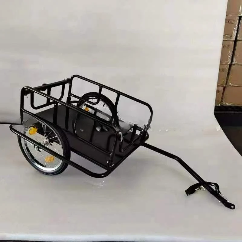 Remolque de bicicleta plegable y desmontable personalizable, popular en Europa y América, para carga, mascotas y monociclos.