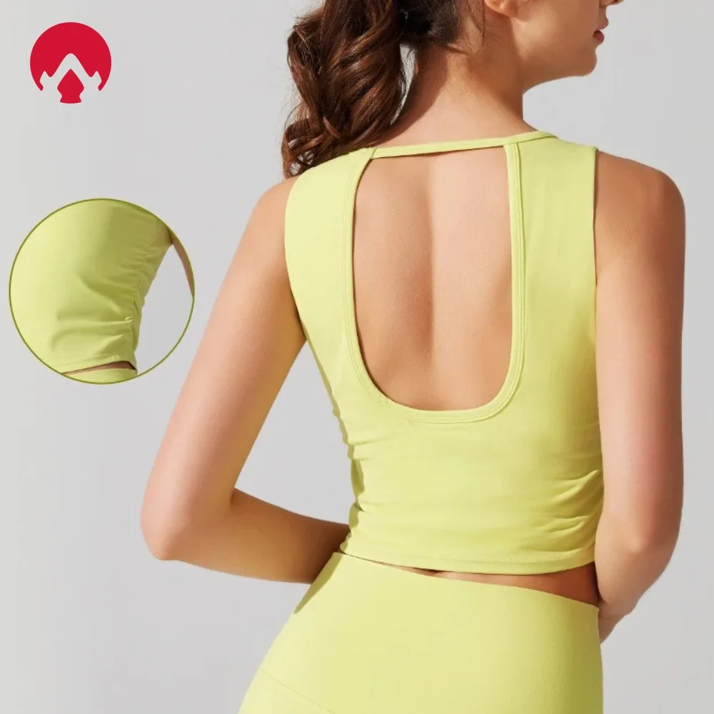 Top de gimnasio con tiras palangre de impacto para mujer, camiseta sin mangas de Yoga sin espalda con sujetador incorporado y copas extraíbles, ropa de Fitness