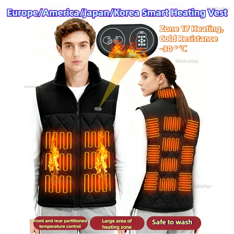 Chaleco calefactable de 17 áreas para hombre, chaqueta calefactora eléctrica con ajuste inteligente de 3 velocidades, ropa cálida de carga, chaleco de algodón para mujer, invierno