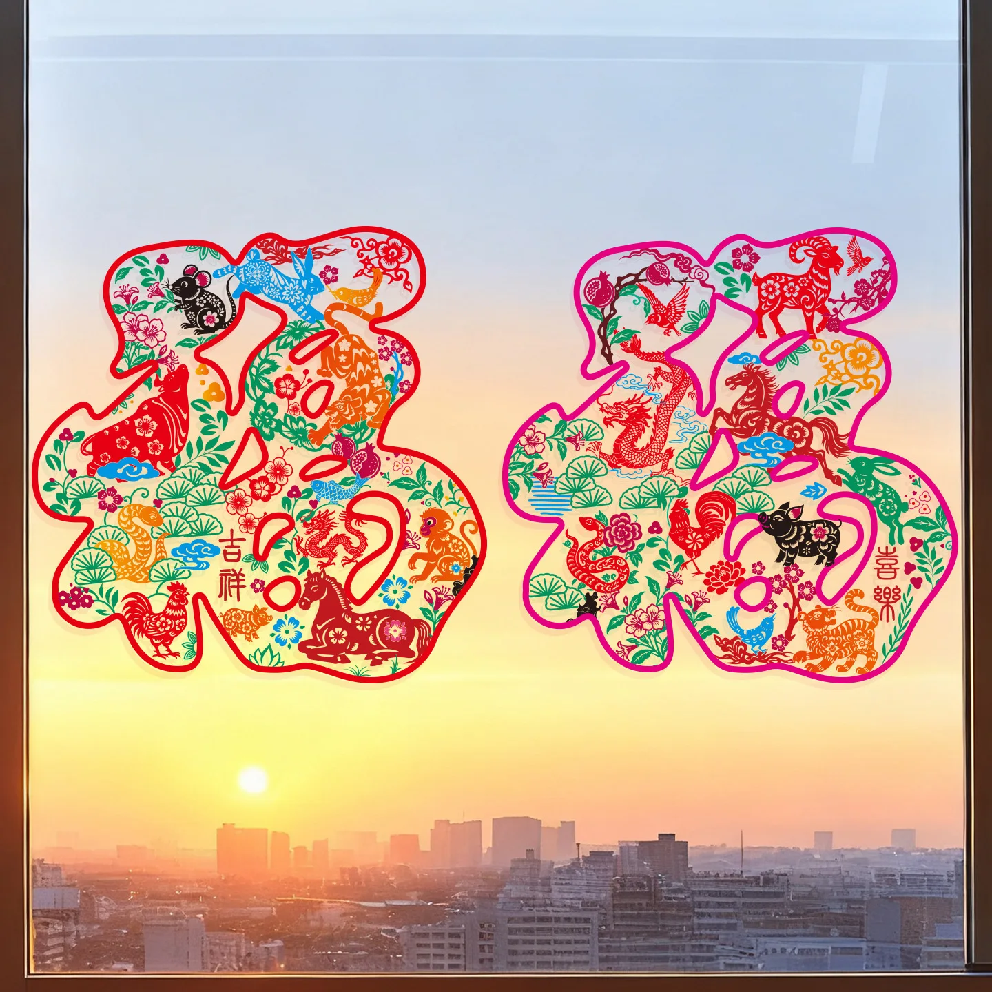 Pegatinas de cristal del Año Nuevo del caballo, pegatinas de electricidad estática para ventana, pegatinas Fukuji, decoración de Nochevieja china 2026