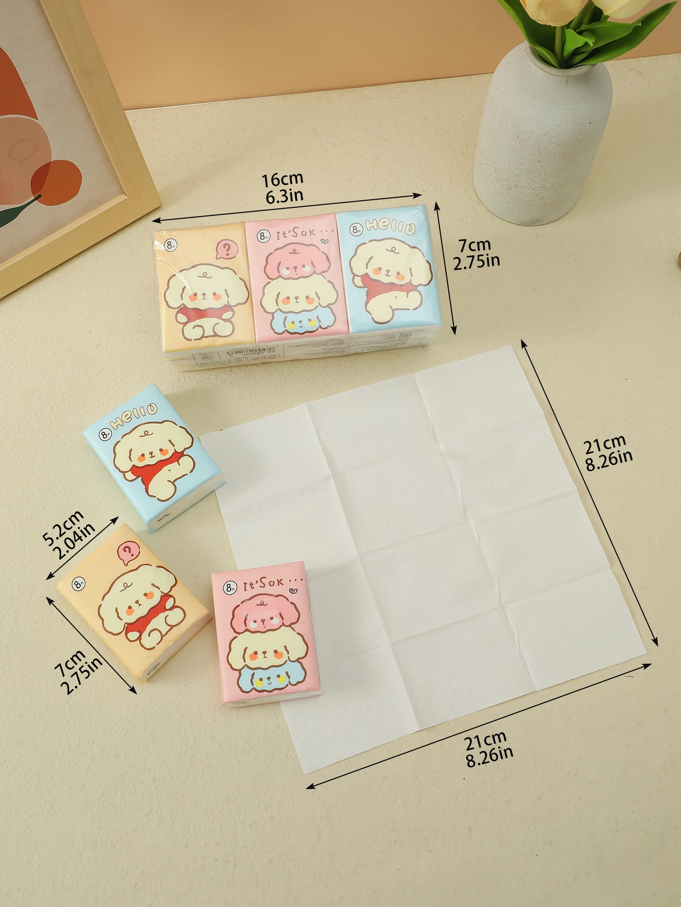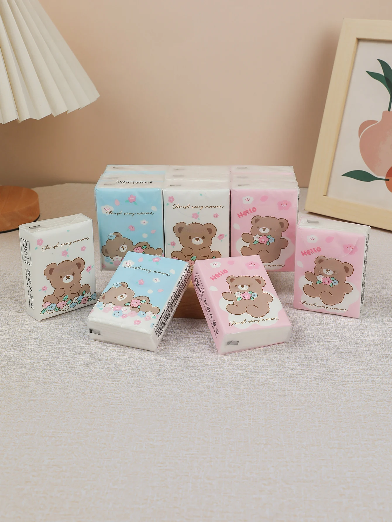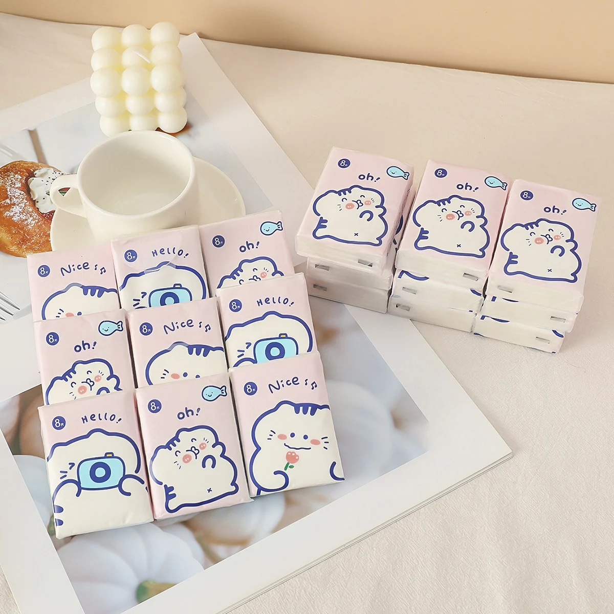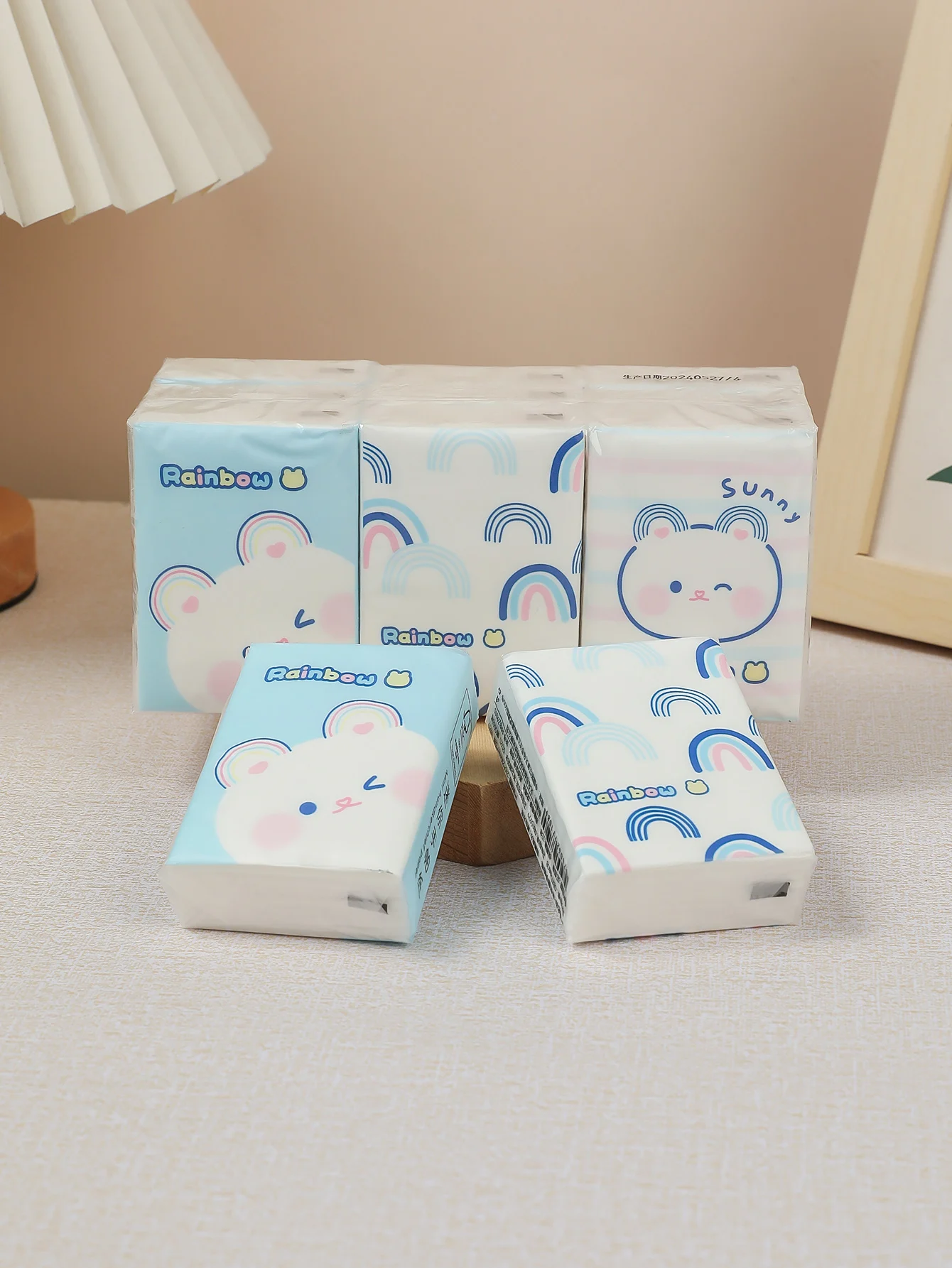3 paquetes de pañuelos faciales gruesos con estampado de dibujos animados, paquete pequeño, prácticos toallas de papel, pañuelos, servilletas, artículos para el hogar