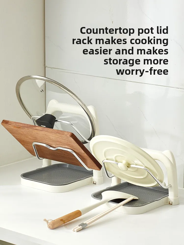 Estante para tapas de ollas, estante para encimera de cocina, estante para espátulas domésticas, placer, tapa de sujeción, estante de almacenamiento de drenaje