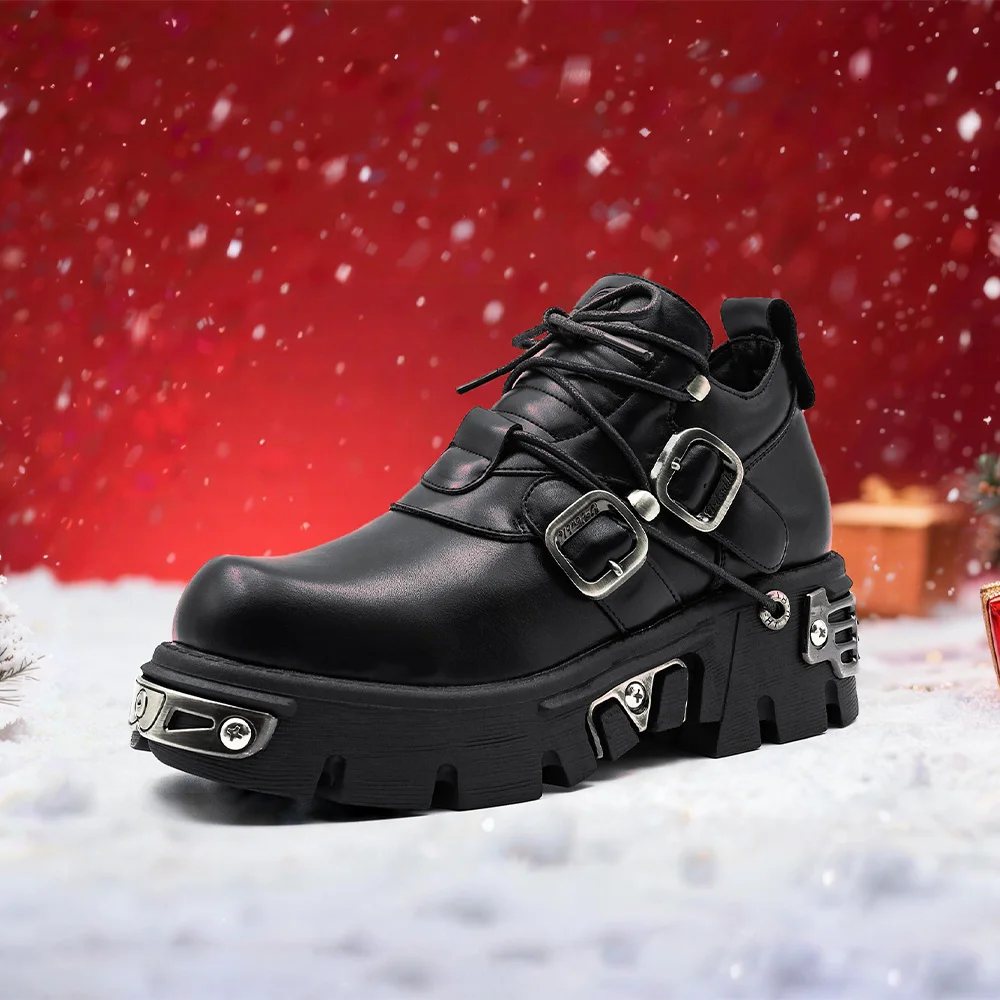 Botas góticas de tobillo Rock 2025, zapatillas de deporte para mujer, nuevos zapatos de mujer de estilo Punk, zapatos de plataforma con altura de tacón con cordones, decoración de Metal para mujer