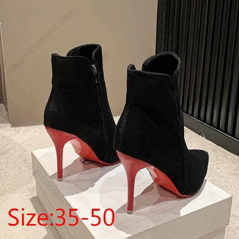 2026 nuevos tacones de aguja de 10cm tacones rojos de invierno con cremallera botines negros cálidos zapatos aterciopelados para mujer talla súper grande 47 48 49 50