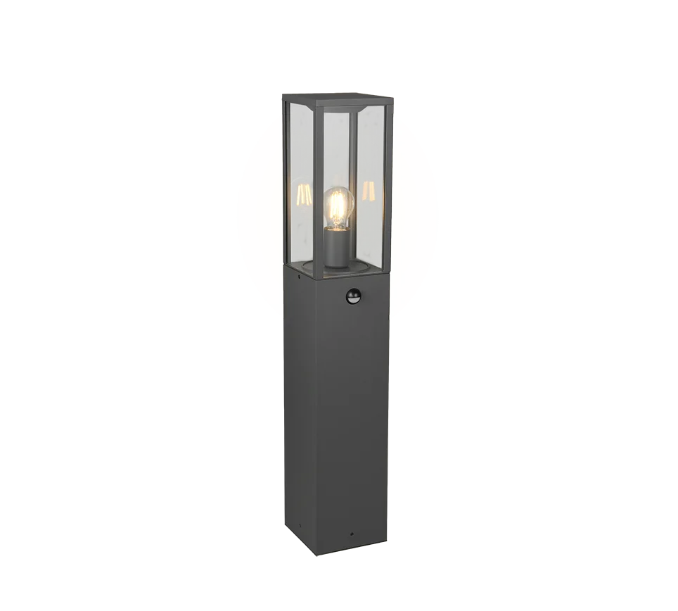 Poste externo de aluminio y vidrio C/sensor de movimiento, antracita, H80 cm, Garonne