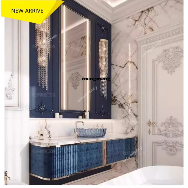 M138 Mueble de baño de mármol de alta gama para villa, lavabo para manos y cara, combinación de gabinete de baño, personalizable