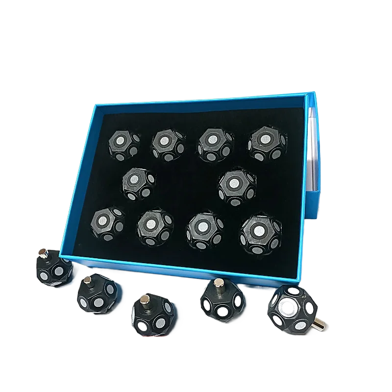 Escaneo 3D de formas esféricas de múltiples caras con escáneres 3D, puntos de marcado, marcadores portátiles altamente reflectantes, puntos de destino, A