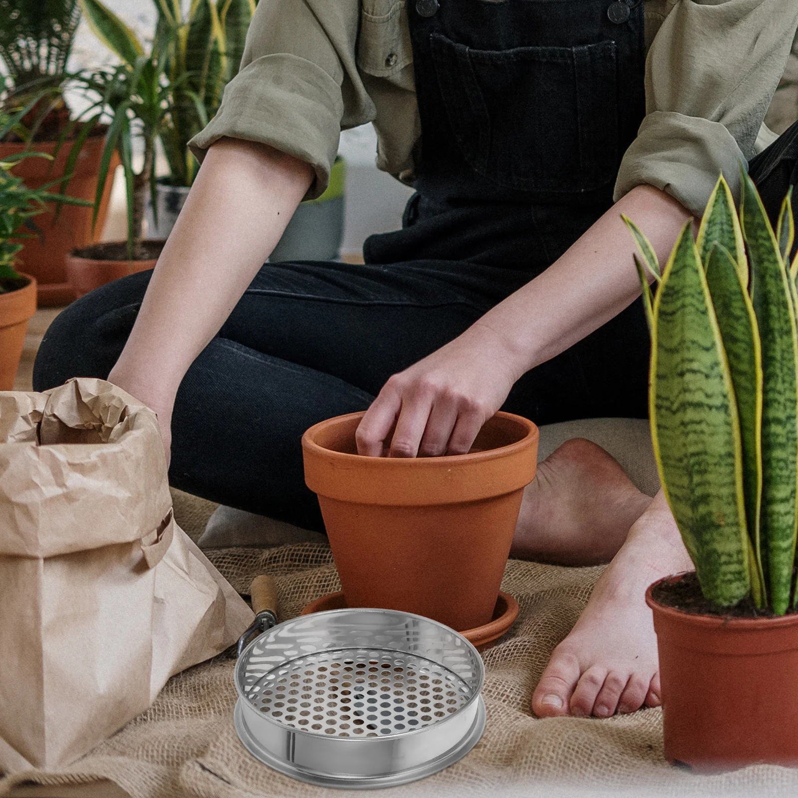 Tamiz de Jardín de Acero Inoxidable, Malla para Tierra y Compost, Herramienta de Filtrado Ligera y Portátil para Balcón, Mini Jardín, Bonsái