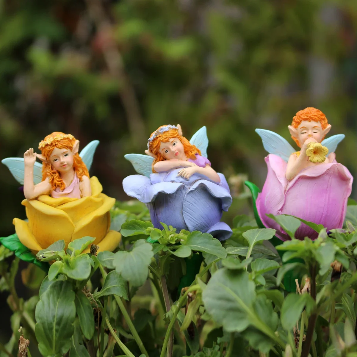 Juego de insertos de hadas de flores, artesanías de resina, insertos para macetas y bonsái, insertos de estatua para decoración de patio y jardín