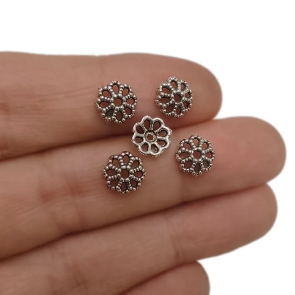 100 Piezas de Tapas Metálicas de 6MM para Abalorios en Forma de Margarita, para Fabricación de Joyas, Accesorios y Suministros para Pulseras, Pendientes y Collares Plateados L1022