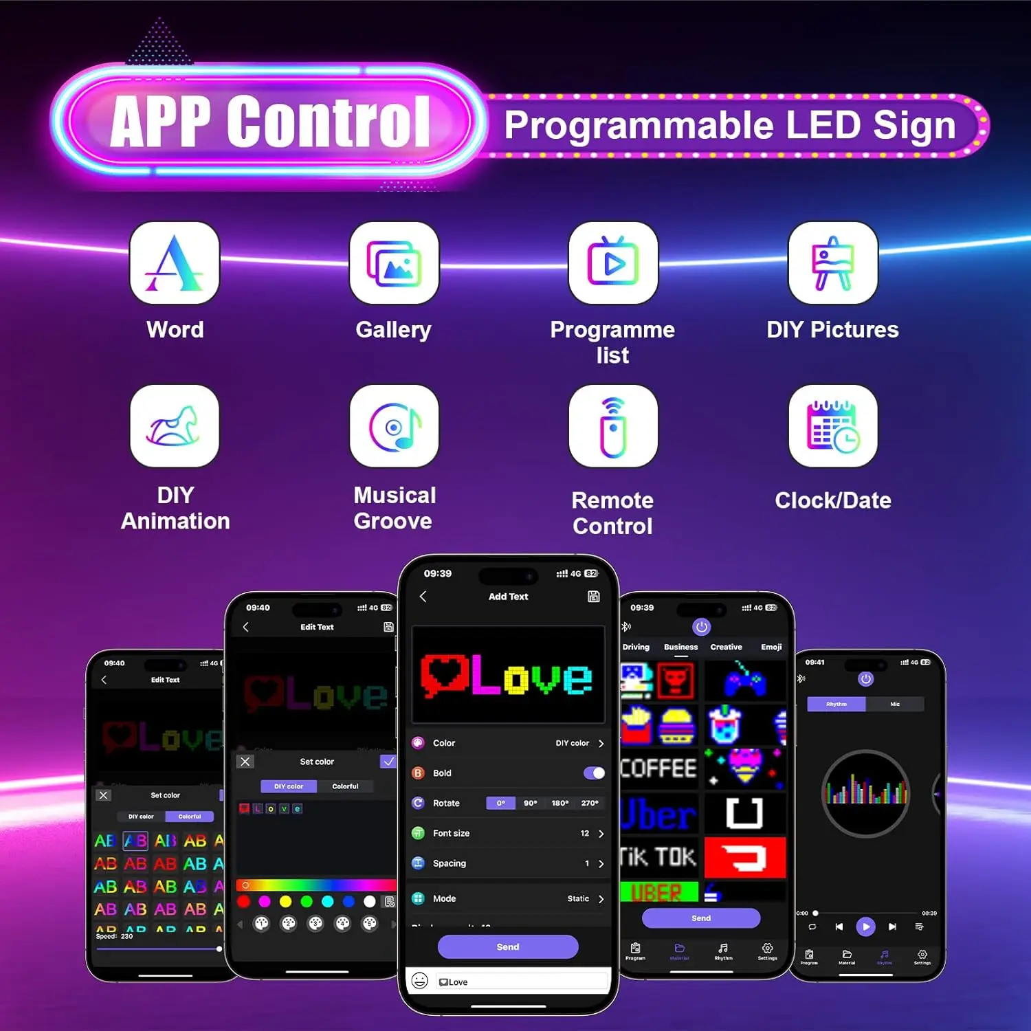 Panel de píxeles de matriz LED DIY, control de aplicación de luz de señal publicitaria programable de animación RGB para automóviles y camiones,