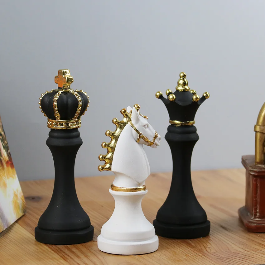 Adornos de resina de ajedrez, decoración de escritorio, artesanías, rey, reina, estatua de ajedrez pequeña, obra de arte nórdica para el hogar, muebles de decoración para sala de estar