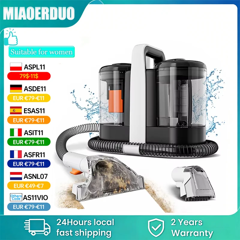 MIAOERDUO - Limpiadora de Alfombras Portátil de 15KPa y 600W, Limpiadora de Tapicería, Limpiador de Manchas Especial para Mascotas, Potente para Sofás y Asientos de Coche