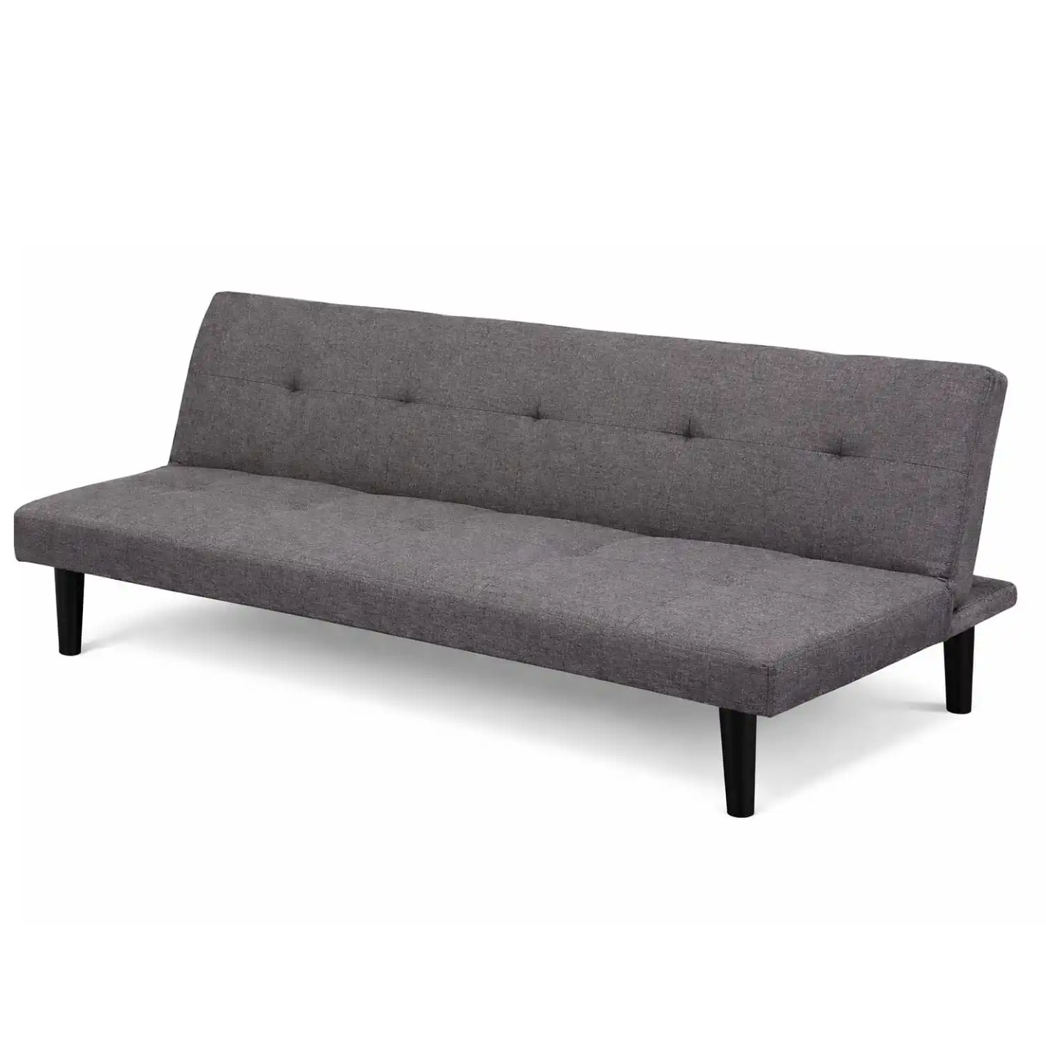 Sofá Cama Bajo de 3 Plazas con Respaldo Reclinable de 165x76x65 cm - Sofá de Salón en tela efecto lino gris y estructura de madera - Capacidad de 150 kg