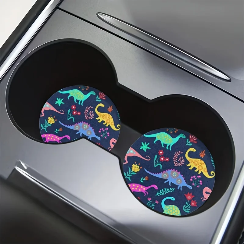 Adorables posavasos de dinosaurio para coche - EVA absorbente, fácil de quitar, mantiene los portavasos limpios y secos - Perfecto para hombres y mujeres