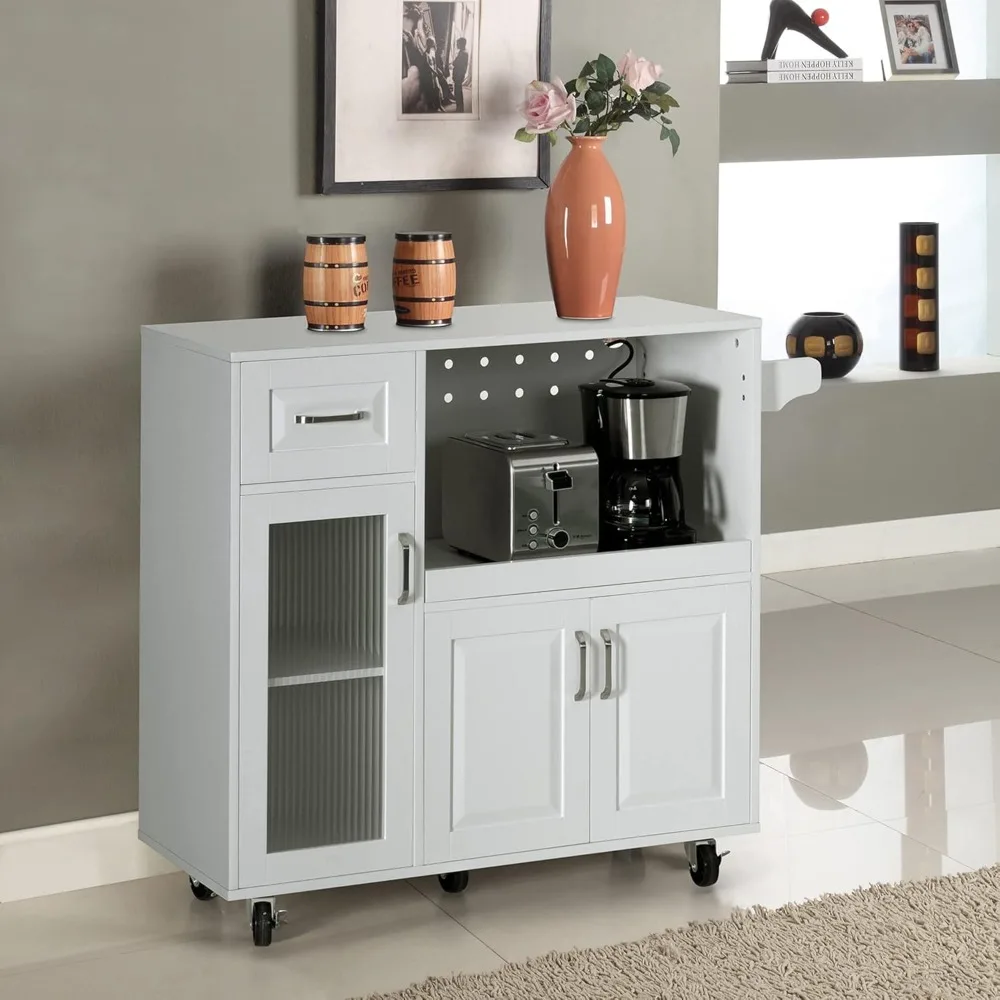 Carrito de Cocina con Ruedas, Bandeja Extensible, Estante Ajustable y Puerta de Vidrio, Almacenamiento Móvil para Cocina