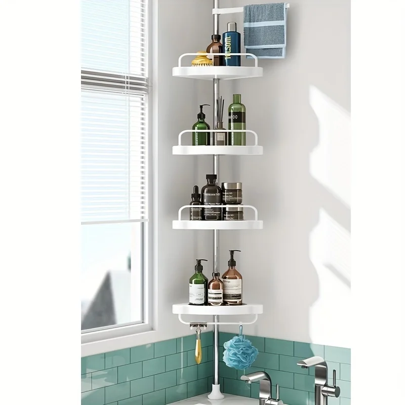 Estante de esquina ajustable para carrito de ducha, poste de tensión de piso a techo, estante organizador de almacenamiento de baño extensible para ducha y cocina