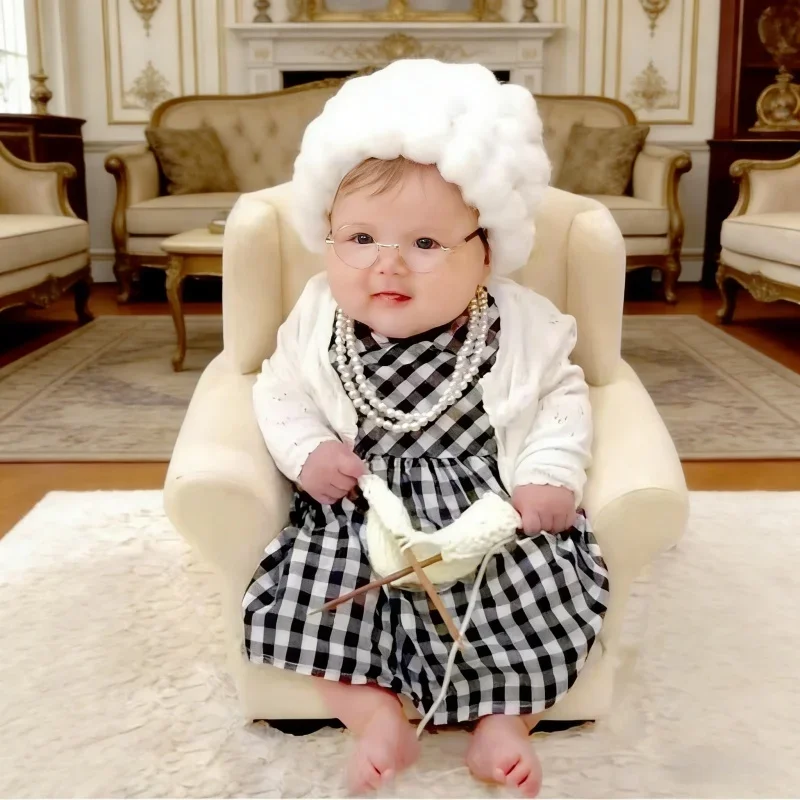 Disfraz de Cosplay de Abuela para Recién Nacida, Conjunto de Gorro y Ropa para Bebés, Accesorios de Fotografía, Accesorios Esenciales para Sesiones de Fotos de Bebés