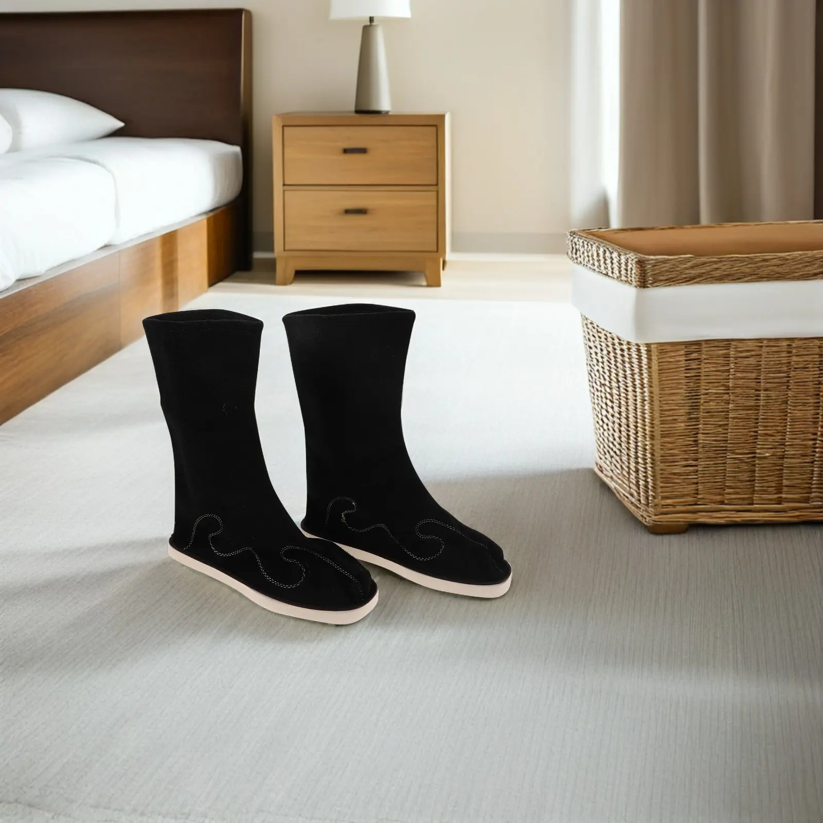 1 Par de Zapatos Hanfu Chinos Históricos, Diseño a Media Pantorrilla, Suela Antideslizante, Material PU, Botas Tradicionales Bordadas para Ceremonias y Artes Marciales