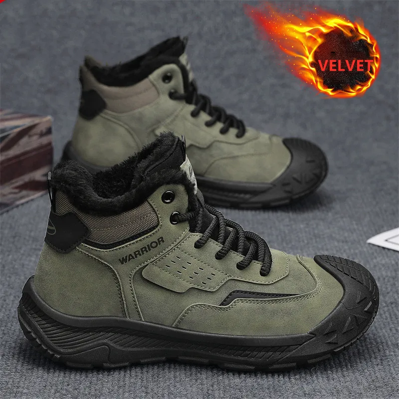 Zapatos de algodón con aislamiento de lana gruesa para hombre, antideslizantes, para pesca al aire libre, senderismo, botas de trabajo de caña alta, senderismo, campamento y caminar