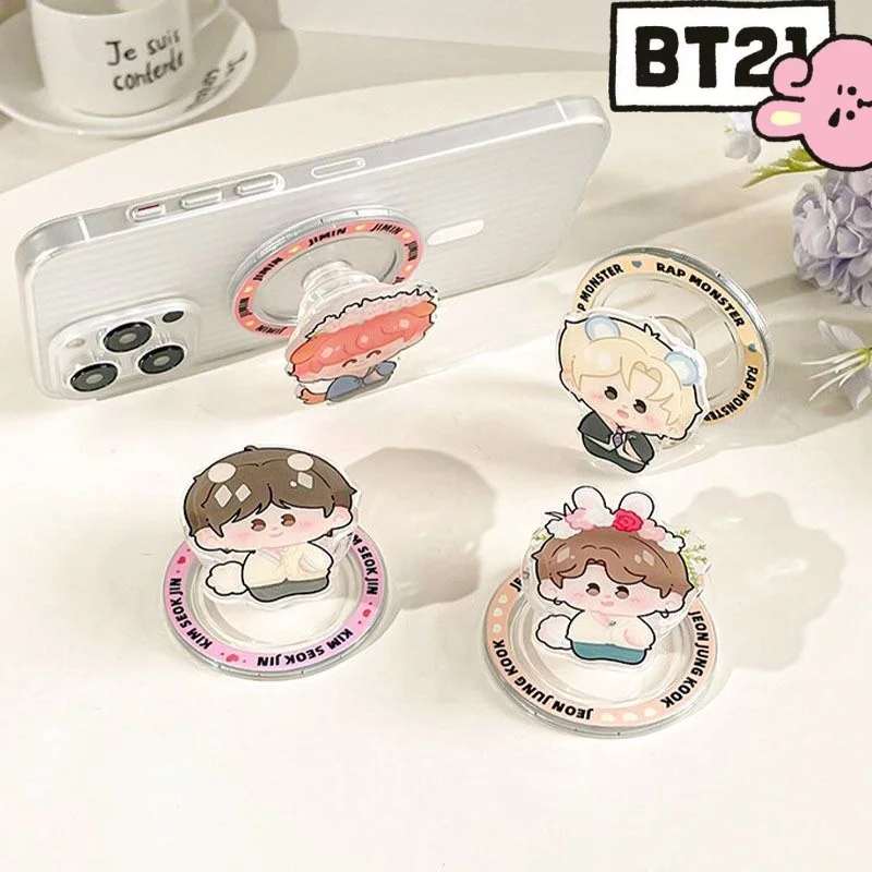 Soporte para teléfono Popular coreano Idol Boy Group, soporte de agarre de enchufe acrílico, soporte retráctil para perezosos, soporte para teléfono con personaje de Anime