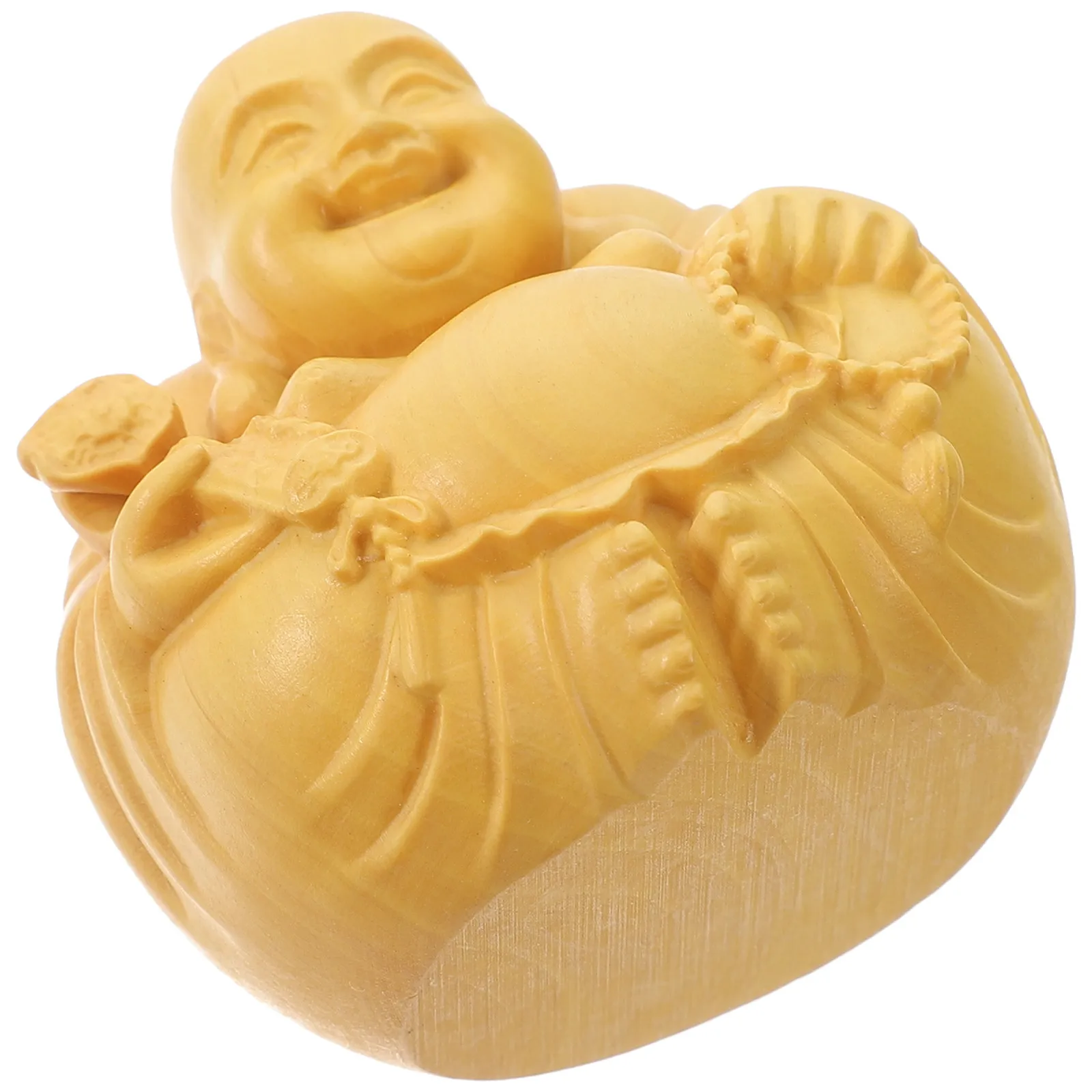 Adorno de Escritorio de Buda Maitreya Hecho a Mano en Madera de Álamo Amarillo, Decoración para el Hogar que Ahorra Espacio, Adorno de Madera Tallada Sólida